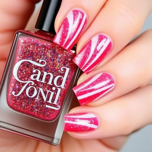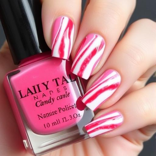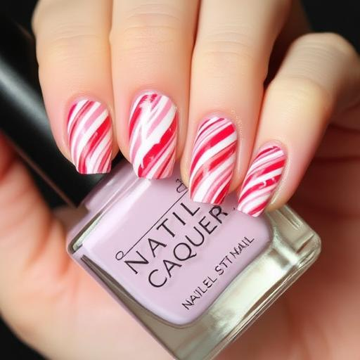 You can’t go wrong with the original. This design features crisp, diagonal red and white stripes that instantly bring to mind a classic peppermint stick. To get the look, start with a white base coat, then use thin striping tape to create perfectly even lines. Fill in the stripes with a glossy red polish, remove the tape, and finish with a clear top coat for a smooth, shiny finish. This look is timeless and works on any nail length, whether you wear it on all your fingers or as a single accent nail.