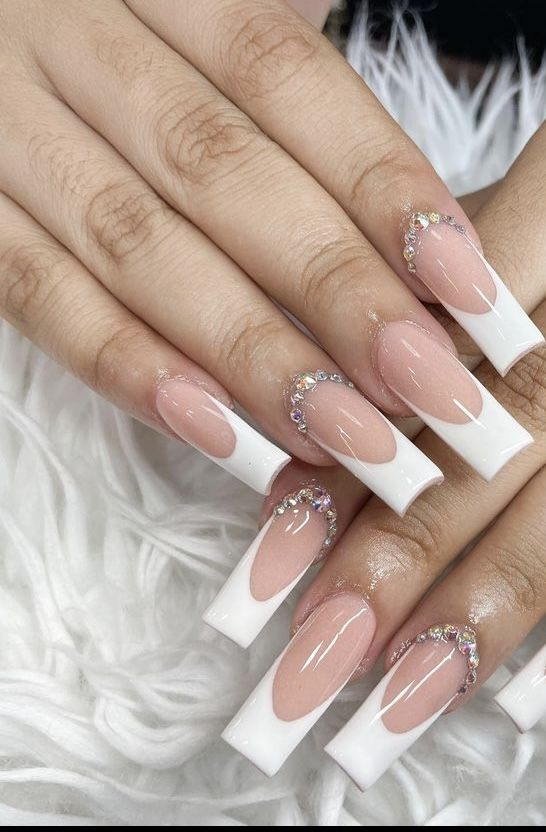 For a touch of soft, classic glamour, this style incorporates a single, tiny pearl or bead placed at the base of the nail, near the cuticle. Paired with a classic white or milky tip, the pearl acts as a subtle embellishment, elevating the entire look with its lustrous beauty.