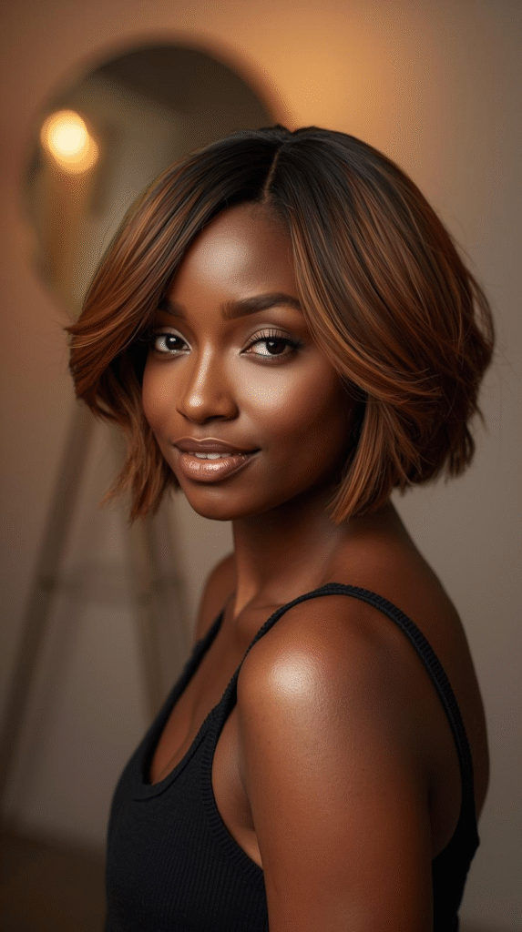 A timeless classic, honey blonde is the perfect way to welcome the sun. This warm, golden hue looks absolutely radiant against dark skin, providing a beautiful, natural-looking glow. It’s versatile enough for a full-head color, soft balayage, or delicate highlights that catch the light perfectly.