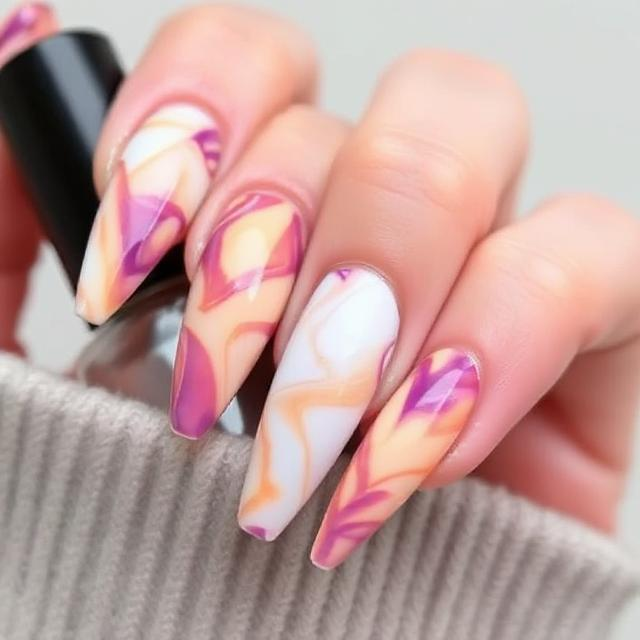 “Sunset Marble Effect” combines the soft, swirling elegance of marble nails with the bold, warm colors of a summer sunset. Long nails give you plenty of space to showcase the beautiful marbling, which typically blends vibrant oranges, pinks, purples, and yellows. The marble effect itself mimics the fluid, natural movement of colors during a sunset, giving your nails an organic, flowing feel. To create this look, use a combination of gel polishes or acrylic paints that blend into soft streaks. Adding a glossy finish will give the design a polished, glassy look that enhances the marble effect, making your nails truly pop.