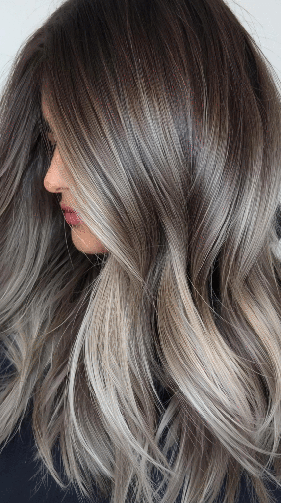 This is arguably the most popular and low-maintenance way to wear the trend. An ash grey balayage involves hand-painting silvery-grey pieces onto a dark base, creating a seamless, blended transition from your natural roots. This technique allows for a beautiful grow-out with no harsh lines.