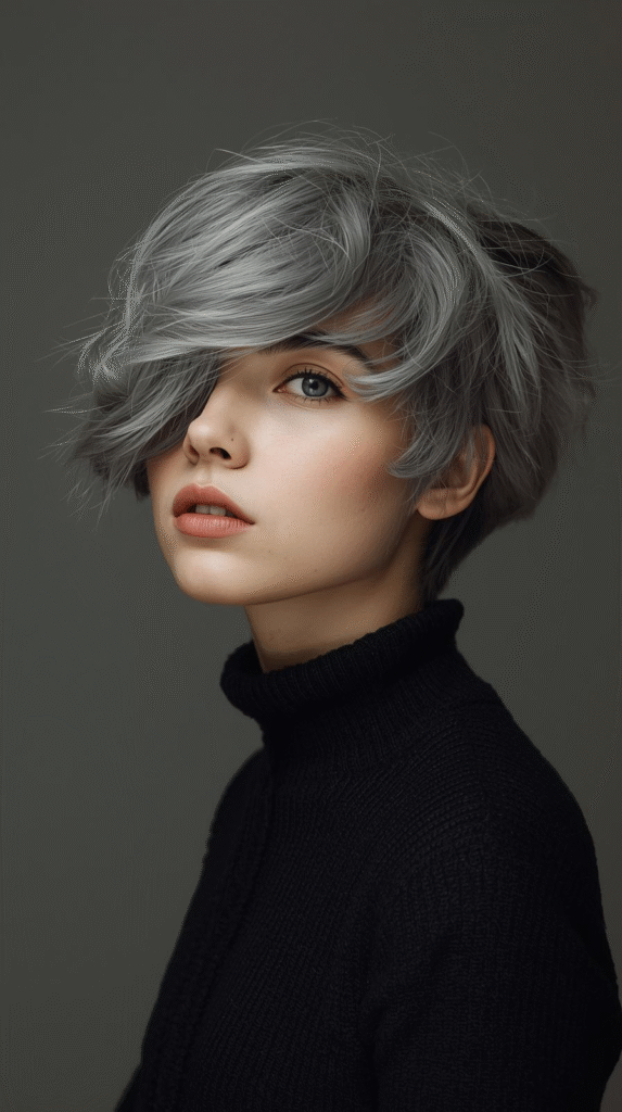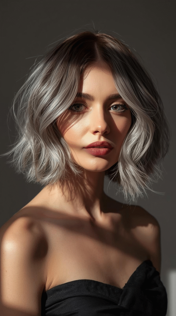 A shadow root is a modern technique where the roots are deliberately kept dark or colored a deeper shade. When paired with ash grey lengths, it creates a “lived-in” look that adds depth and makes maintenance a breeze. This edgy style is perfect for a low-fuss routine.
