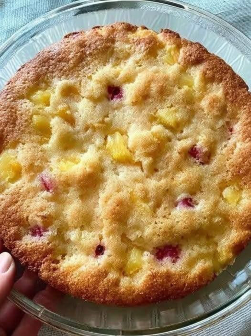 As it bakes, the butter melts, the fruit releases juices, and the dry ingredients absorb everything—transforming into a soft, golden, cobbler-like dessert.