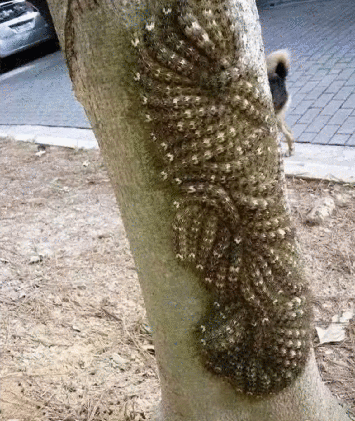 Wrapped around the trunk were dozens — maybe more — of caterpillars or larvae, banded in colors that mimicked tree bark so well it was nearly impossible to distinguish them from the wood. But these weren’t ordinary caterpillars. They were the kind that keep wildlife experts on alert. The kind that children should never touch. The kind you hear warnings about on late-night science programs but never think you’ll encounter in real life.